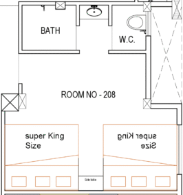 Room Facilities : Max. Occupancy – 6 People 2 Super King Size Bed 1 Wardrobe Attached Toilet & Bathroom